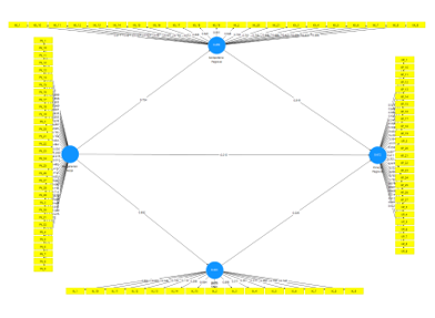 The Work Climate construct achieved a Cronbach’s Alpha of 0.804 and rho_A of 0.863, indicating good internal consistency. Composite Reliability of 0.825 and AVE of 0.789 confirm adequate convergent validity [25]. Employee Performance demonstrated high reliability, with a Cronbach’s Alpha of 0.901 and rho_A of 0.925, as well as Composite Reliability of 0.914 and AVE of 0.704, all surpassing recommended thresholds [26]. Employee Competence yielded the highest reliability scores across all metrics, with Cronbach’s Alpha at 0.927, rho_A at 0.937, Composite Reliability at 0.936, and AVE at 0.716, reflecting strong reliability and validity [27]. Work Experience also demonstrated robust results with Cronbach’s Alpha of 0.922, rho_A of 0.927, Composite Reliability of 0.930, and AVE of 0.705, consistent with good measurement standards [28], [23]. Overall, all constructs met the necessary criteria, ensuring the instruments used were reliable and valid..