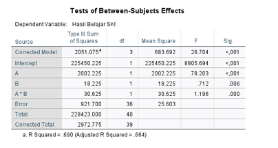 d. Interaksi antara Strategi Pembelajaran dan Motivasi Belajar terhadap Hasil Belajar SKI: Uji ANOVA dua arah menunjukkan adanya interaksi yang signifikan antara strategi pembelajaran dan motivasi belajar terhadap hasil belajar SKI siswa. Hal ini dibuktikan dengan nilai signifikansi interaksi A*B sebesar 0,000, yang lebih kecil dari 0,05. Interaksi ini menunjukkan bahwa strategi pembelajaran yang dipilih akan lebih efektif jika disesuaikan dengan tingkat motivasi siswa. Kombinasi strategi PjBL dengan motivasi tinggi menghasilkan hasil belajar tertinggi.