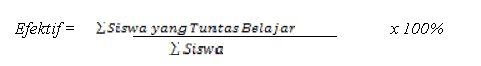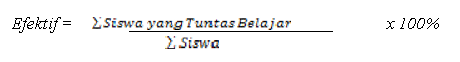 Media pembelajaran efektif, jika siswa mengalami ketuntasan belajar. Untuk mengetahui keefektifan video animasi yang dikembangkan, maka tes hasil belajar dianalisis dengan menggunakan persamaan berikut ini: