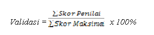 Untuk mengetahui apakah materi yang disajikan dalam media pembelajaran animasi audio visuak yang dikembangankan telah memenuhi kriteria valid digunakan persamaan sebagai berikut: