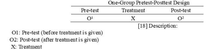 This study employed a quantitative research approach with a pre-experimental design, specifically a one-group pretest-posttest design. The pre-experimental approach, which consists of a pre-test, treatment, and post-test, was used in this study. States that “the out comes of pre-experimental research are determined by dependent variables and are not solely affected by independent variables. This occurrence is possible due to the absence of a control variable and the non-random selection of samples”[19].