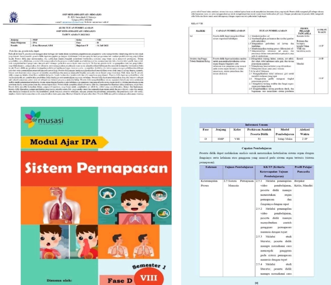 Pendidik IPA SMP telah menyederhanakan RPP sebagai salah satu bentuk implementasi kebijakan Kurikulum Merdeka. Kebijakan ini diharapkan dapat memberikan waktu yang lebih banyak bagi pendidik dan peserta didik untuk berinteraksi, sehingga peserta didik lebih aktif dan proses pembelajaran lebih menarik[19]. Bentuk penyederhanaan RPP adalah dengan membuat modul ajar yang sebelumnya tertunda, berdasarkan Alur Tujuan Pembelajaran (ATP). Hal ini sesuai dengan pernyataan Rahmadayanti dan Hartoyo dalam penelitiannya, bahwa modul ajar dalam Kurikulum Merdeka adalah dokumen pembelajaran yang berisi tujuan, langkah-langkah, media pembelajaran, serta asesmen yang dibutuhkan dalam satu topik berdasarkan ATP. Penyederhanaan administrasi perangkat pembelajaran diharapkan dapat mengalihkan waktu pendidik dari urusan administrasi ke aktivitas belajar peserta didik, sehingga meningkatkan keterampilan mereka[20].