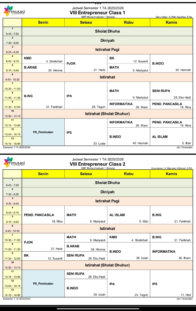 Berdasarkan Gambar 3, jadwal pelajaran tersebut digunakan oleh pendidik IPA dan peserta didik dalam mendukung kegiatan pembelajaran kelas 8 di SMP Muhammadiyah 1 Sidoarjo.