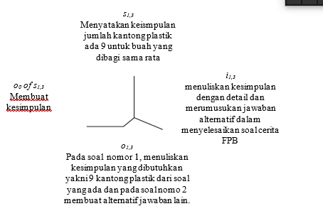 Pada analisis aspek inference, RV membuat kesimpulan dengan detail dan merumusukan jawaban alternatif dalam menyelesaikan soal cerita FPB. Melalui s1,3= “Menyatakan keismpulan jumlah kantong plastik ada 9 untuk buah yang dibagi sama rata”, dapat dilihat bahwa RV dapat memami kesimpulan yang sudah dibuat dan mampu merumuskan beberapa alternatif penyelesaian selain menggunakan pohon faktor. Kemudian objek matematika tentang i1adalah menarik kesimpulan dengan benar dan Kemudian objek matematika tentang i3 yakni membuat alternatif jawaban lain. Berikut hasil pengerjaan soal tes dan petikan wawancara dengan RV pada soal nomor 1.