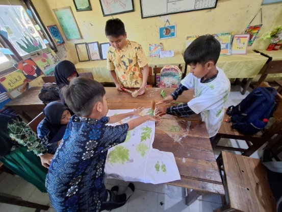 Dokumentasi Modul Ajar P5 juga memperlihatkan adanya penekanan pada dimensi Profil Pelajar Pancasila yang berkaitan dengan kepedulian dan gotong royong. Modul menuntut peserta didik untuk tidak hanya menghasilkan produk ecoprint, tetapi juga merefleksikan proses kolaboratif dan sikap peduli yang muncul selama kegiatan. Hal ini selaras dengan gagasan Lickona [36], yang menekankan bahwa pendidikan karakter tidak boleh berhenti pada ranah kognitif, tetapi harus mencakup pembentukan nilai moral dan sosial melalui praktik nyata di kelas.