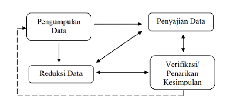 Analisis data pada penelitian ini menggunakan model Miles dan Huberman yang dibagi menjadi empat tahap, yaitu; (1) pengumpulan data merupakan salah satu tahap analisis yang mengumpulkan data relevan pada penelitian. (2) Reduksi data ialah proses pemilihan, penyederhanaan, pengabstrakan dan transformasi data kasar yang muncul dari catatan-catatan tertulis di lapangan. (3) Penyajian data adalah penyusunan laporan hasil penelitian yang dilakukan agar mudah dipahami sesuai dengan tujuan yang dibutuhkan. (4) Kesimpulan merupakan inti dari sebuah laporan yang berisi keteraturan, penjelasan, alur, sebab dan akibat.