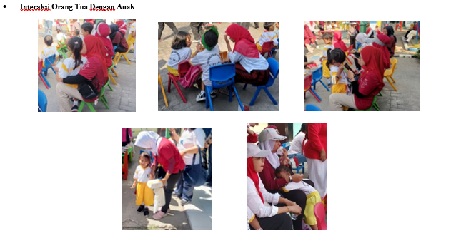 Komunikasi antara orang tua bersama dengan anak, baik melalui percakapan ringan seperti bertanya “ingin makan apa hari ini, apakah hari ini senang, gembira atau bersedih, bagaimana tadi belajarnya di sekolah”, mendengarkan anak yang sedang bercerita tentang kegiatan dari pagi berangkat sekolah hingga waktu pulang sekolah selesai dan mendengarkan serta memberi respon yang baik saat anak bercerita tentang teman dan guru baru yang dikenalnya, selain itu juga orang tua sering mengajak berdiskusi sederhana kepada anak, misalnya “kamu suka warna apa, sebelum tidur mau dibacakan buku cerita yang mana, besok mau bawa bekal apa ke sekolah, apa yang kamu lakukan saat disekolah tadi pagi” beberapa orang tua merasa cerita anak harus selalu didengarkan tanpa memotong pembicaraan anak sebelum mereka selesai bercerita, sehingga anak merasa sangat dihargai. Anak-anak juga memiliki aktivitas atau kegiatan yang dilakukan bersama dengan orang tua, misalnya bermain bersama, belajar, bercakap-cakap dengan menyenangkan, mengajak anak jalan-jalan pergi ke suatu tempat dan bercerita, aktivitas tersebut merupakan salah satu sarana anak untuk belajar bersosialisasi untuk mengembangan keterampilan sosial mereka serta membangun hubungan emosional yang baik antara anak dengan orang tua.
