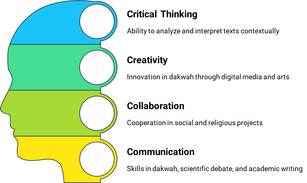 Critical thinking, creativity, collaboration, and communication are essential in the 21st century to prepare students for global challenges. According to Sugito (2024) and Taufikin (2025), pesantren curricula should integrate these skills with technology-based pedagogical approaches [29], [30]. Utilizing deep learning and hybrid learning (a blend of face-to-face and digital learning) allows students to enhance their skills in an environment that supports critical thinking, teamwork, and problem-solving. However, continuous teacher training in technology and 21st-century teaching methodologies remains an issue. Without adequate infrastructure and intensive professional development, achieving these competencies becomes difficult.
