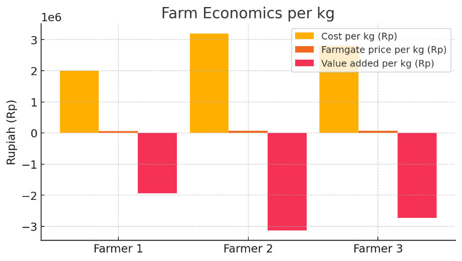 Figure 4. Farm economics per kg (cost, farm gate price, value added)