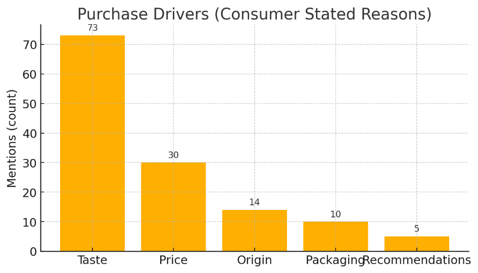 Because taste is the dominant purchase driver and origin matters for a non trivial segment, moving selected volumes into small batch roasting and labeled retail packs can reallocate margins upstream, consistent with the “move downstream” strategies advocated in global value chain development [9] [4].