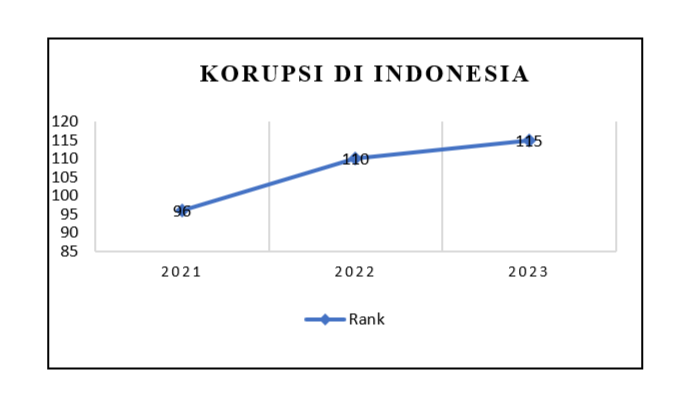 Corruption is a major problem facing many countries, including Indonesia. Its presence not only negatively impacts governance and the private sector but also threatens the country's economic and financial stability.One of the greatest dangers to a country's economic growth and financial stability is corruption.This definition includes various practices such as bribery, extortion, embezzlement, bribery, and conflicts of interest.[1]. In the last three years, it has been shown that Indonesia has experienced a rising trend in its corruption rankings in the Corruption Perception Index (CPI), where the higher the ranking, the greater the increase in corruption in Indonesia.