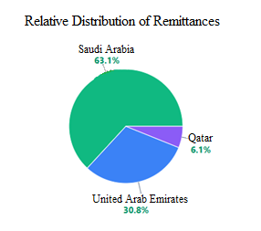 From a geographical perspective, Saudi Arabia is clearly the most popular destination for Jordanians seeking to migrate. The country has the largest number of Jordanians in the Gulf region, with an estimated 50-55% of all Jordanians living abroad. In 2024, Saudi Arabia accounted for almost half of all remittances sent by Gulf nations, totalling USD 1.468 billion.