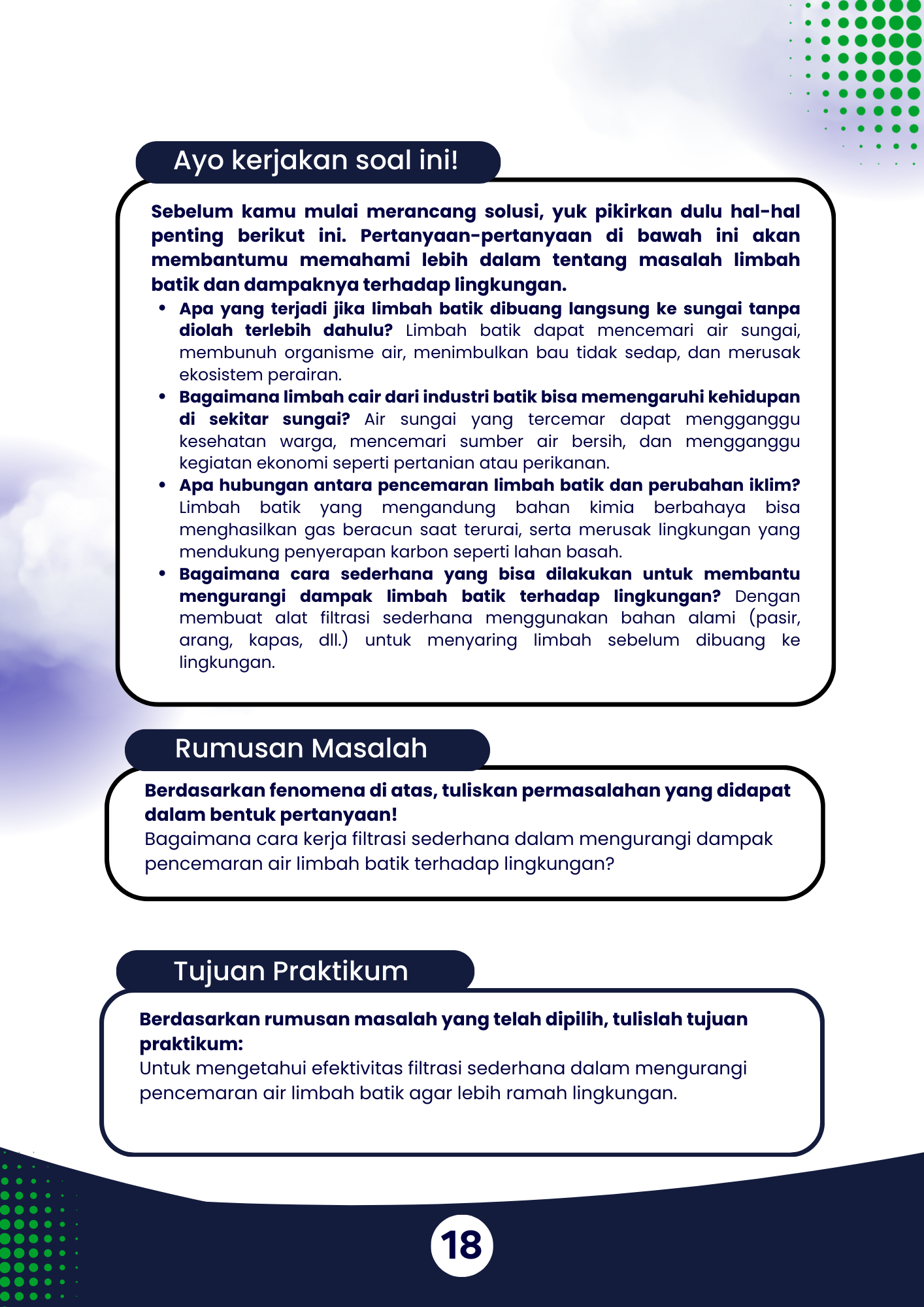 Figure 18. Gambar 18. Ayo Kerjakan Soal ini, Rumusan Masalah, dan Tujuan Praktikum