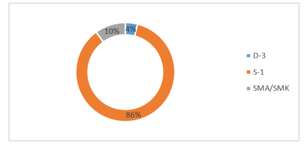 Based on the data presented in Figure 3, the composition of the highest educational background of the 50 research respondents shows a significant dominance of higher education levels. The majority of respondents, amounting to 86% (43 individuals), hold a Bachelor’s degree (S-1). This large proportion reflects strong professional qualifications within the studied construction project environment, where strategic and managerial roles generally require an undergraduate academic foundation to support complex technical decision-making [16]. Furthermore, respondents with a senior high school or vocational high school (SMA/SMK) educational background account for 10% (5 individuals). This group represents operational personnel who play a crucial role at the technical field level or in project execution. Meanwhile, the smallest proportion consists of Diploma Three (D-3) graduates, comprising 4% (2 individuals) of the total population, who provide support through applied vocational expertise aligned with the needs of the construction industry [17]. Overall, this educational distribution constructs a narrative indicating that the study involves participants with adequate intellectual capacity. The dominance of Bachelor’s degree holders provides a strong signal that the collected data possess high levels of credibility and objectivity, as they originate from respondents with relevant theoretical understanding and professional experience in the dynamics of the infrastructure development sector [18].