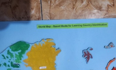 General Background: Visual learning media play a significant role in creating meaningful and engaging classroom experiences, particularly in geography and language education. Specific Background: The integration of a world map and flashcards is designed to support senior high school students in identifying countries and describing their characteristics through interactive and collaborative activities. Knowledge Gap: Previous discussions on instructional media often focus on digital tools, while the structured combination of a three-dimensional world map and bilingual flashcards remains underexplored in classroom practice. Aims: This article aims to present the design and classroom implementation of world map–based learning media for country identification. Results: The implementation demonstrates that students actively participate in group discussions, analyze descriptive information, and identify countries based on geographical location and characteristic features. Novelty: The media combines a raised-surface world map with bilingual descriptive flashcards to create a structured, collaborative, and explorative learning experience. Implications: This learning media provides an alternative instructional strategy for geography and English teachers to facilitate spatial understanding, descriptive skills, and active classroom engagement.