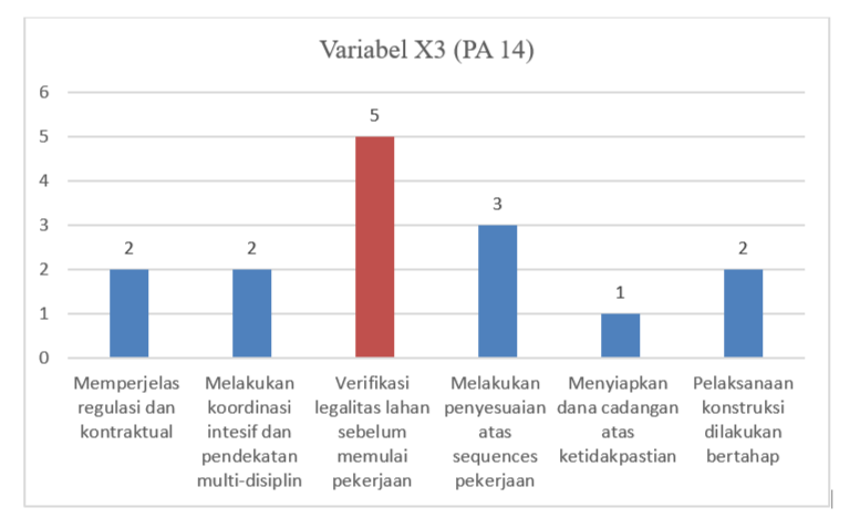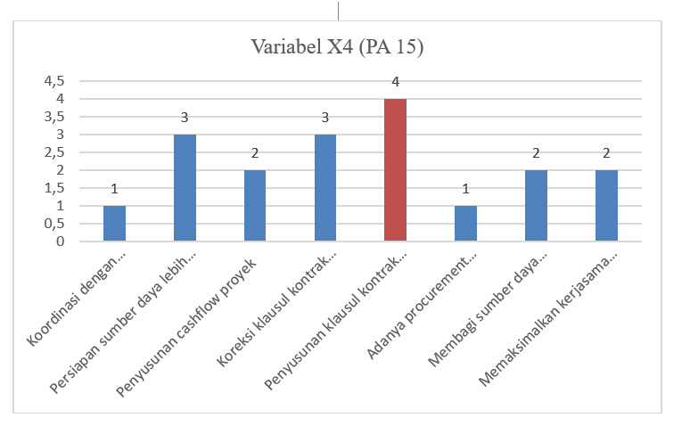 In the construction project implementation phase, it is very important to carry out planning, coordination, and management to mitigate or avoid risks that are likely to occur. The risks that often occur during the implementation phase include time overruns, which are influenced by stakeholder, material, and external factors, resulting in losses for the contractor, especially when the agreed contract is a lump sum.[6] Obstacles and challenges in the implementation of development will certainly affect productivity, so a risk management study must be conducted by performing risk analysis and addressing potential risk impacts that affect construction performance. Therefore, this study was conducted to determine the effect of limited involvement of various parties in managing risk during the implementation of highway construction projects.[7]