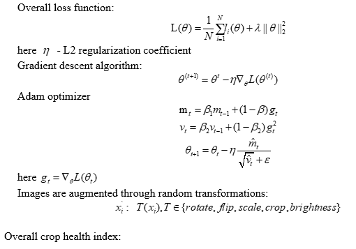 As input data, the model uses crop images obtained from ground-based cameras, drones, or remote sensing systems. These images cover various vegetation stages, lighting conditions, and agroclimatic factors, ensuring the model’s adaptability to real field conditions.