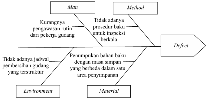 Pemborosan yang telah diidentifikasi akan dianalisis satu per satu di setiap faktor (man, material, metode, machine, environment) agar dapat diketahui faktor penyebab dari pemborosan yang terjadi di gudang bahan baku PT XYZ.