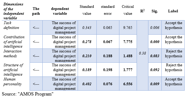 Figure 4. Table (9) Analyzing the impact of generative AI dimensions on the success of digital project management