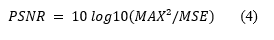 Measures reconstruction quality by Peak Signal-to-Noise Ratio (PSNR):