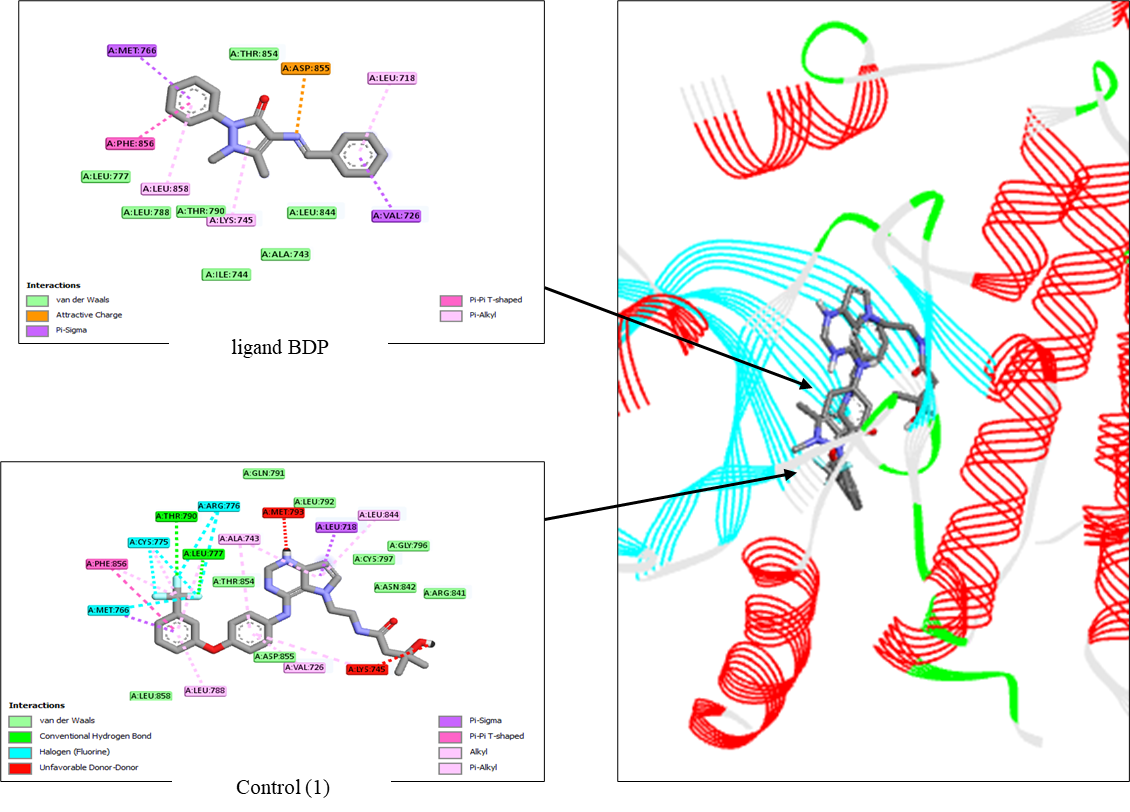 Figure 3. Fig. 3.Two-dimensional interaction diagrams of ligandBDPand control (1) with the target breast cancer virus 3poz