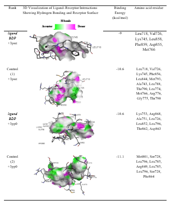 Figure 5. TABLE V: Docking score (∆G) kcal/mol of ligand BDP and references against breast cancer viral target proteins (3PP0 and 3POZ)