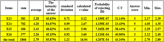 The data in Table (13) for analyzing the sample’s answers to the dimension (technical support and assistance services) indicate that the highest arithmetic mean (4.48) was for the sixteenth question, which indicates the keenness of library workers to provide technical support as quickly as possible to beneficiaries when facing problems in using digital resources, followed by the seventeenth question with an arithmetic mean (4.47), which indicates that the library provides notifications directed to beneficiaries alerting them to cases of malfunctions or maintenance of the digital systems that it provides to beneficiaries.