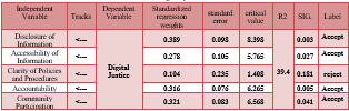 The researcher next performed the following tests to examine how the dimensions of transparency practices affect digital justice: