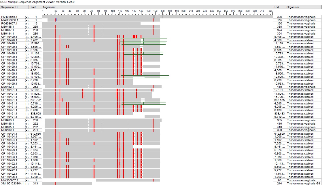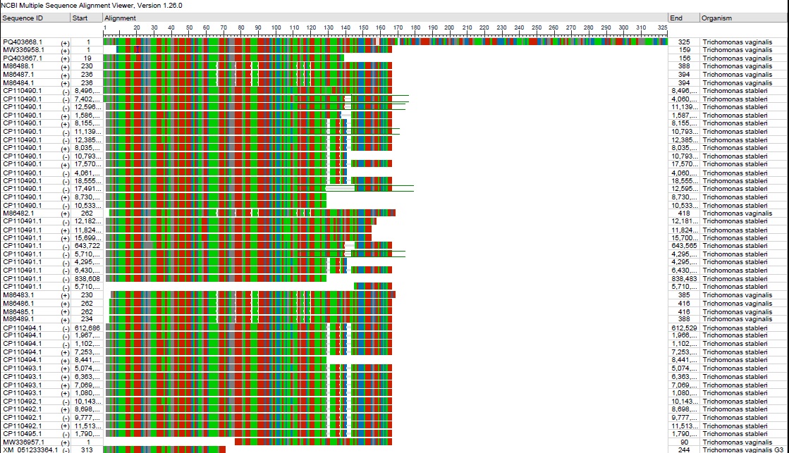 Figure 5. Figure ( 3 ): MSA of study and NCBI-GenBank T. vaginalis isolates / strains targeting the ITS1 region by the NCBI-Viewer software showing nucleic acids similarity and differences