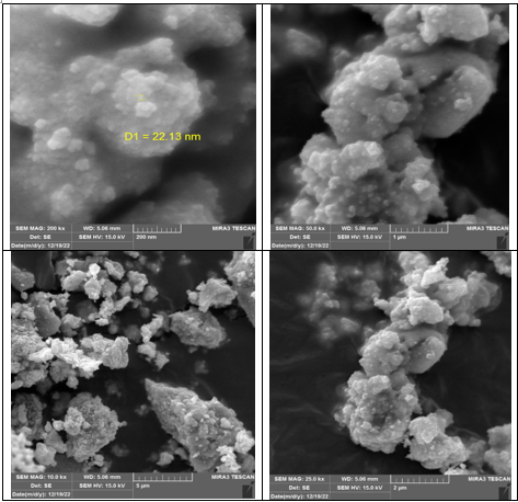 4. FE-SEM showed that nanoparticles had near-spherical morphology with particle dimensions in agreement with those of crystallites obtained using XRD, which confirmed the existence of structural aspects of nanoscale in the synthesized material.