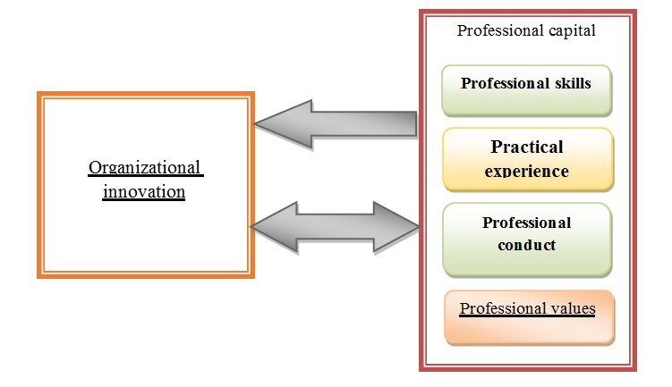 Based on the research problem, questions, and hypotheses, a hypothetical model was designed to reflect the nature of the relationship between the independent variable (professional capital) and the dependent variable (organizational innovation). That model includes four dimensions of professional capital. These are expected to directly affect organizational innovation. Built on professional capital This model is a model where different dimensions are connected interchangeably. Here we take as an example private banks: For an obvious reason of space, its application to the finance section of state-owned enterprises has on this occasion been omitted.